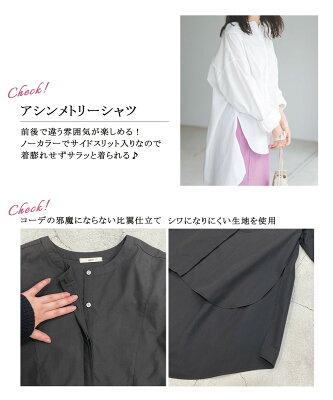 【送料無料】レディース トップス アシンメトリー シャツ 無地 チュニック 大きめ ワンピ ブラウス 黒 ゆったり 体型カバー 大人可愛い 春 夏 秋 RIBOU 2021AW【宅配便】【RB2021AW】(一部予約10月16日~20日以内発送)