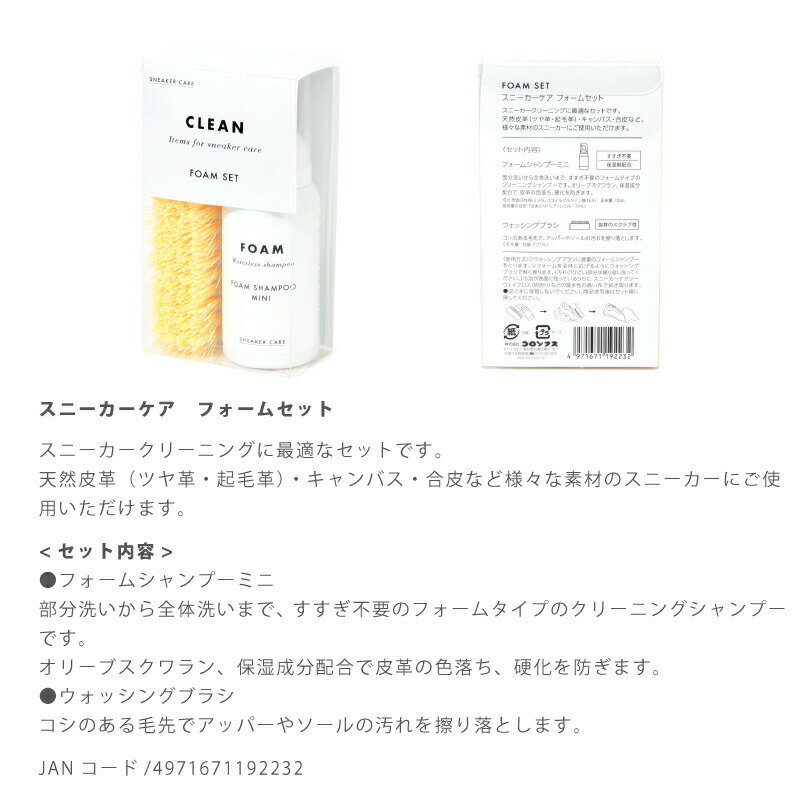 Information 商品名 コロンブス COLUMBUS スニーカーケア フォームセット SNEAKER CARE FORM SET フォームシャンプー ウォッシングブラシ 商品番号 cb-sneakercare-foamset 商品コメント スニーカークリーニングに最適なセットです。