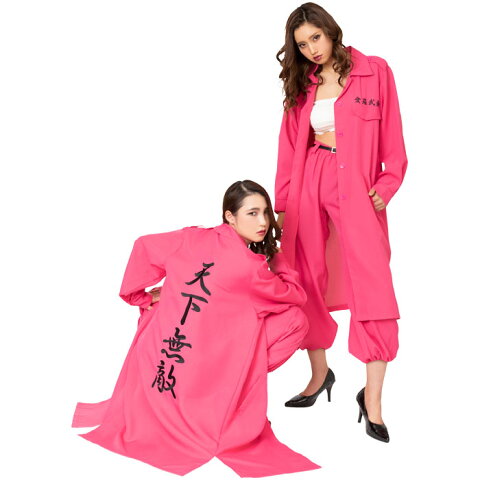 レディース コスプレ 特攻服ジャケット 天下無敵 ピンク本格的な刺繍が胸と背中にあるレディース特攻服上下セットです。