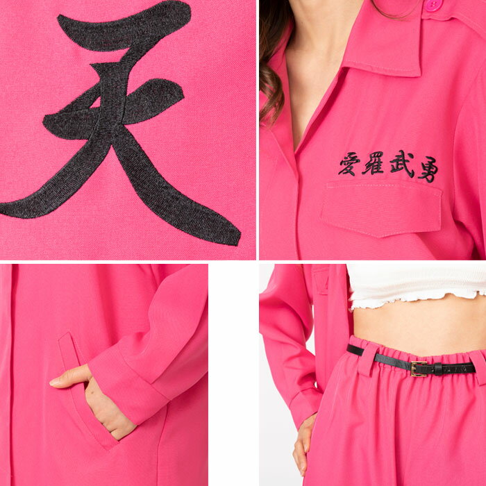 送料無料 ピンク 特攻服ジャケット 天下無敵 愛羅武勇 ヤンキー オラオラ系 不良 特攻服 ジャケット 女性用 制服 高校生 学生服 暴走族 コスプレ衣装 コスチューム レディース コスプレ ハロウィン 運動会 イベント 文化祭 忘年会 仮装 s-cs_6f969