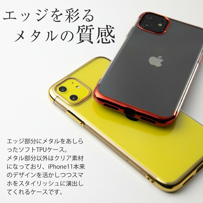\箔押しオプションへはこちらから/\名入れオプションへはこちらから/商品名称iPhone11 メタルフレームTPUケース適応機種iPhone11カラーレッドブルーピンクゴールドシルバーブラック商品説明エッジを彩るメタルの質感エッジ部分にメタルをあしらったソフトTPUケース。